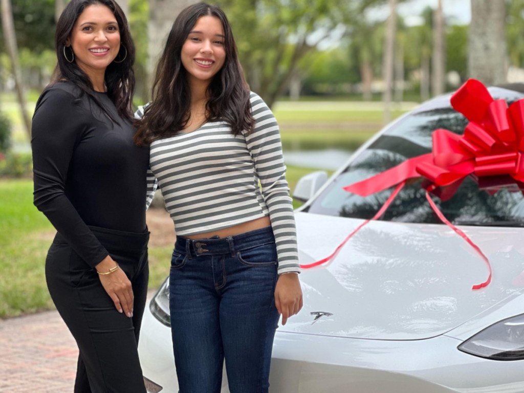 Luciane Vaz, uma mulher que trouxe consigo uma história de coragem ao imigrar para os Estados Unidos ainda jovem, tornou-se conhecida nas redes sociais por compartilhar seu percurso de conquistas. Recentemente, ela presenteou sua filha de 16 anos, Michelle, com algo que ultrapassou todas as expectativas: um Tesla.