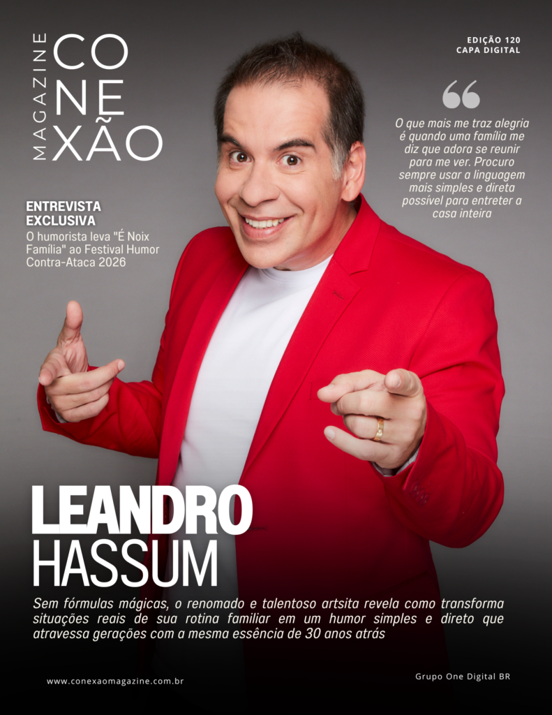 O que faz um artista atravessar gerações e continuar querido por pessoas de todas as idades? Não existe fórmula, mas Leandro Hassum parece ter descoberto o segredo há muito tempo. O artista, que estampa a nova capa digital da Conexão Magazine, edição nº 120, vem há décadas consolidado como um dos maiores nomes da comédia brasileira e carrega uma trajetória invejável: filmes que somaram mais de 20 milhões de espectadores nas salas de todo o país, presença marcante na televisão, nos palcos e uma capacidade rara de transformar o cotidiano em situações que qualquer brasileiro reconhece, gargalha e ama.