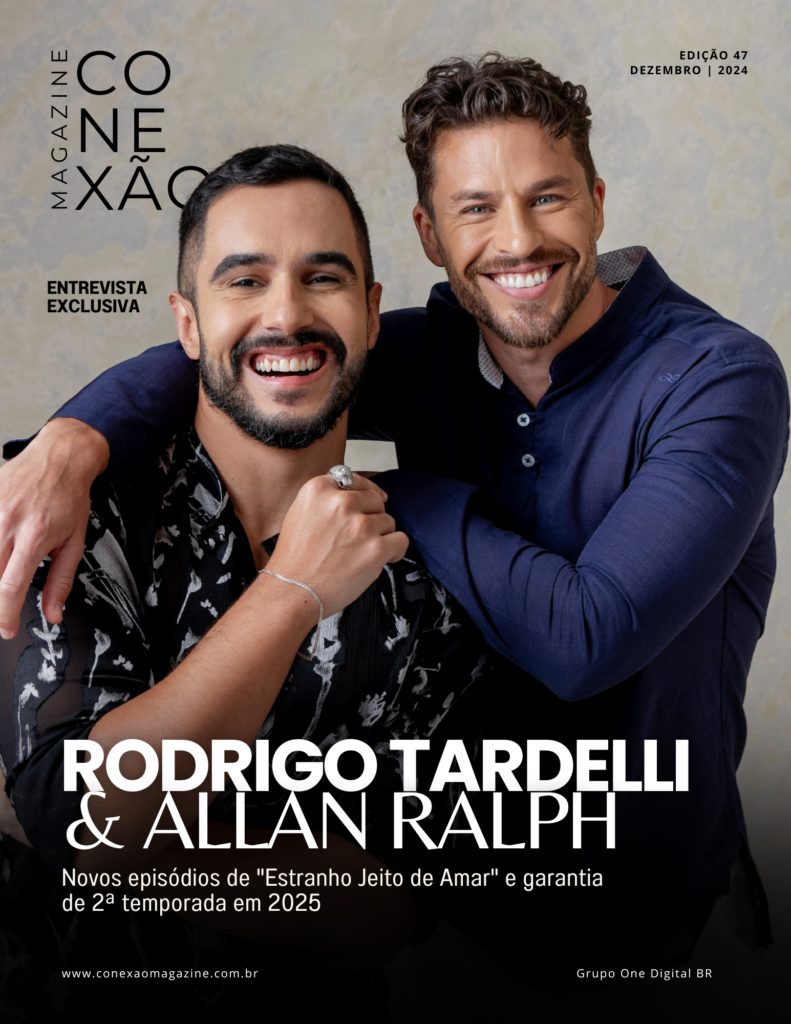 Prestes a estrear no YouTube com os novos episódios especiais de fim de ano de “Estranho Jeito de Amar”, os atores Rodrigo Tardelli e Allan Ralph estampam a nossa nova capa digital. Após o sucesso da primeira temporada, que já soma mais de 3 milhões de visualizações no YouTube, a série ganha uma breve continuação que promete aprofundar um pouco mais a história de Gael (Rodrigo Tardelli) e Noah (Allan Ralph). A nova fase estreia dia 12 de dezembro, no YouTube.