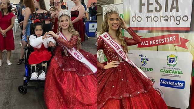 Isabelly Pillar, Pré-Teen Model World, participa da abertura da 21° Festa do Morango