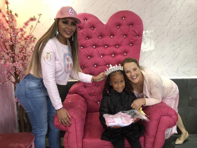 No último sábado, dia 14 de outubro, a rainha da Bateria com Identidade, Ana Beatriz Godói, entregou 60 kits de presentes com uniformes e guloseimais para os alunos do projeto Roseira do Futuro, coordenado pela porta-bandeira soberana, Sueli Riça. Desde de julho, Sueli e sua equipe dão aulas gratuitas de mestre-sala e porta-bandeira, ballet e passistas para crianças de 7 a 13 anos.