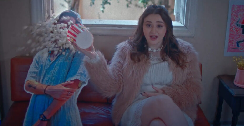 A cantora, ainda, revela que se inspirou em clipes de Sabrina Carpenter, como “Feather”, utilizando humor exagerado e uma paleta de cores marcante. “Queria algo bem caricato, porque essa música é muito divertida. No fim das contas, um livramento sempre é maravilhoso”, brinca. A produção inclui uma narrativa descontraída e personagens inusitados, incluindo a participação do cantor e ator Genaro Magri, que contracena também em forma de um papelão. “Tínhamos algumas opções de atores e escolhi o Genaro, porque ele passava a energia que eu imaginava: jovem e descontraído. Apesar de ele contracenar mais com o papelão, sua participação foi essencial”, explica Laura.