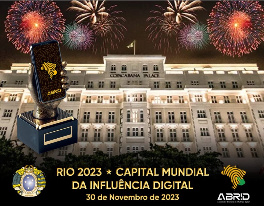 A Academia, preparou para este momento histórico, duas inéditas e exclusivas homenagens o TROFÉU INFLUÊNCIA DIGITAL, símbolo máximo do reconhecimento aos ícones que conquistaram o topo do Universo Digital, a preciosa escultura será entregue em uma inesquecível Noite de Gala – Black Tie, no Centenário e Glamouroso Copacabana Palace Hotel, 30 de Novembro, durante a cerimônia de entrega do Prêmio, será feito o lançamento da “Galeria Gols do Brasil, uma goleada contra a pobreza”*, campanha oficial da ABRID, para colaborar com a agenda BRASIL 2030 – 17 ODS, homenagem especial ao Embaixador da Influência Digital Social, fechando a noite com chave de ouro, um requintado jantar e música de altíssima qualidade …
