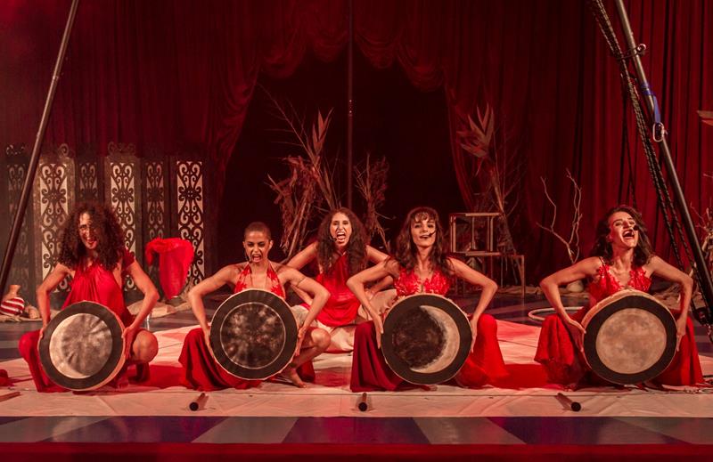 Cinco mulheres em cena promovem um trabalho que transita entre o circo e a dança, presenteando o público com momentos firmes, intensos e ao mesmo tempo gentis. Com números em altura, equilibrismo e força, suas performances são guiadas pela pulsação do toque do tambor, gerando um clima de maravilhamento em todos os presentes